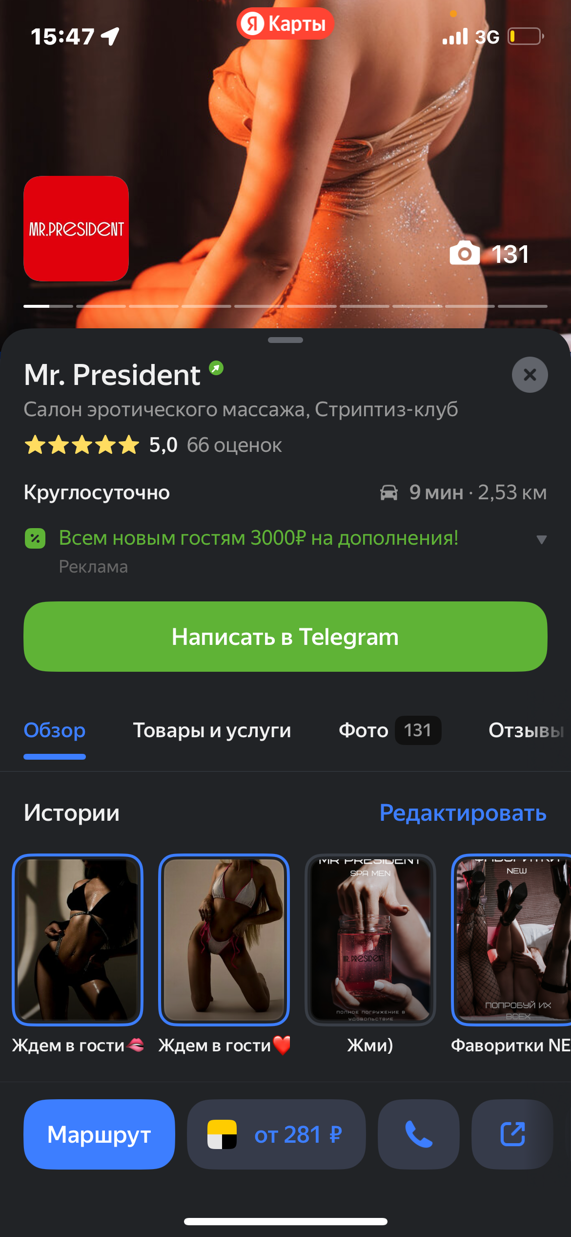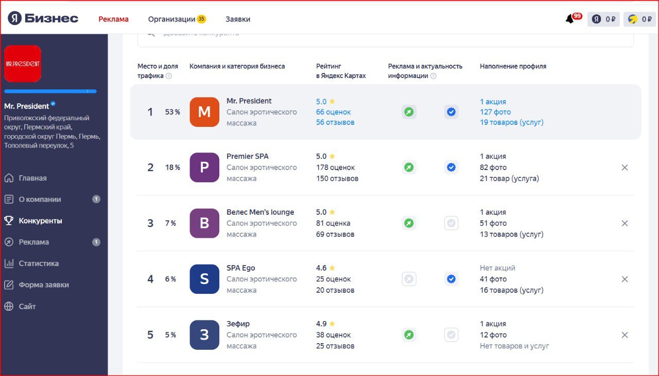Салон массажа «Mr.President» хотел занять первое место в поиске Яндекса в своей нише, но не мог выйти в ТОП. Показатели до начала работы: